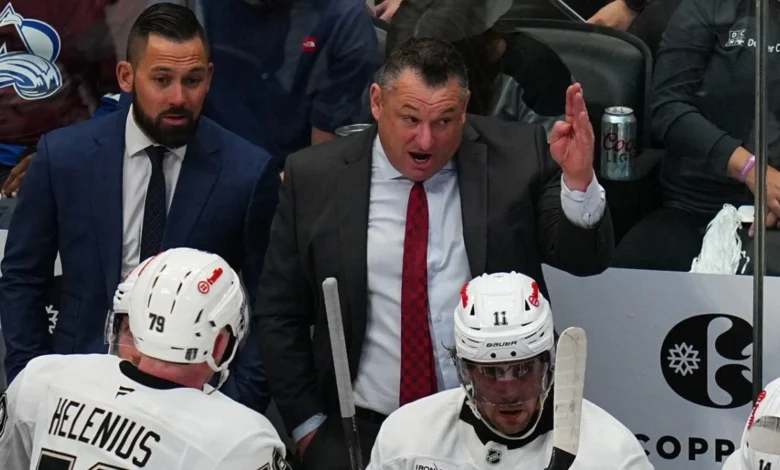 The dramatic moment occurred in the first period of Game 2, with the score deadlocked at 0-0. Following Wedgewood’s crucial save on Kings forward Quinton Byfield, the raucous crowd at the Ball Arena in Denver erupted in a frenzy of cheers and physical expressions of support. Fans, positioned directly behind the Kings’ bench, began banging on the plexiglass enclosure with a fervor that, in this instance, proved too much for the structural integrity of the arena’s barrier. The repeated impacts, amplified by the collective excitement, caused a significant pane of the glass to fracture and then shatter, sending pieces cascading onto the ice and narrowly missing Coach Smith.